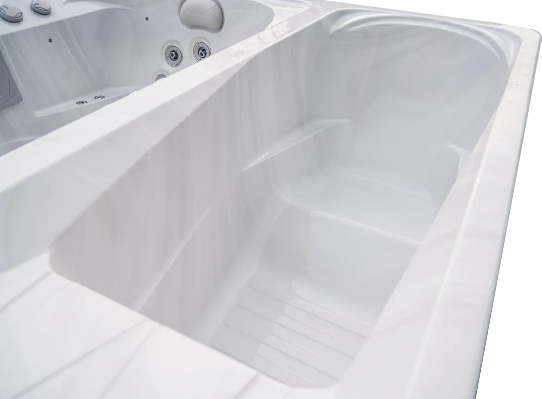 Бассейн достигает массажного эффекта с помощью мощных струй, которые пропускают воду и воздух. Теплые струи воды эффективно расслабляют мышцы и способствуют выработке естественных анальгетиков организма. Сила струи в 5-10 раз больше, чем у обычных джакузи. Многофункциональные массажные форсунки предназначены для различных частей тела, обеспечивая точное воздействие на нужные зоны.